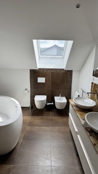 Suite mit Bio-Sauna (9 kW), freistehender Badewanne, WC, Bidet und Doppelwaschtisch