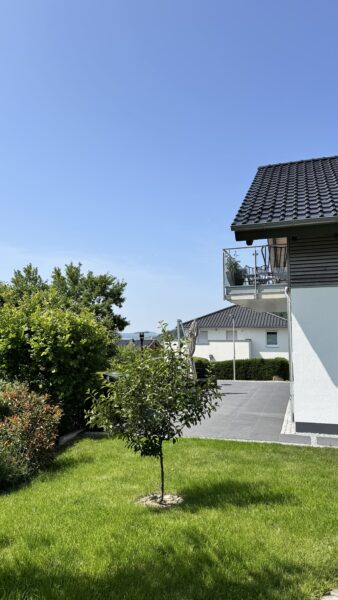 Dieses im Jahr 2017 fertiggestellte freistehende Einfamilienhaus in massiver Bauweise bietet auf 146 m² Wohnfläche ein hochwertiges Wohnambiente in ruhiger Lage. Die moderne Architektur, edle Materialien und die exklusive Ausstattung schaffen ein Wohngefühl, das kaum Wünsche offenlässt. Die durchdachte Raumaufteilung des Hauses genügt auch gehobenen Ansprüchen. Auf der Terrasse und dem Balkon hat man einen herrlichen Blick ins Grüne. Zum Haus gehört ein Carport mit zwei Stellplätzen sowie praktische Nebenräume.