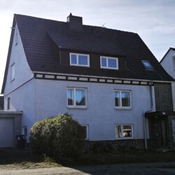 Das zum Verkauf stehende Einfamilienhaus befindet sich am Ortseingang von Dörnberg-Habichtswald. Das Haus ist renovierungs- bzw. sanierungsbedürftig. Es wurde 1935 in Massivbauweise mit einem Dachgeschoss aus Fachwerk errichtet. In 1960 wurde ein Bad, in 1962 eine große Garage und in 1971 ein Treppenhaus angebaut. Das große Grundstück könnte noch bebaut oder das Haus erweitert werden. Im Erdgeschoss befindeen sich ein großer Wohn-, Essbereich, ein Schlafzimmer, eine Küche, ein Tageslichtbad mit Badewanne und Dusche sowie eine Toilette. Im Dachgeschoss sind drei Zimmer, ein kleines Zimmer, eine Küche und ein Tageslichtbad mit Badewanne vorhanden. Das Haus ist komplett unterkellert. Im Kellergeschoss befindet sich neben den Kellerräumen ein Büro, das einen separaten Eingang besitzt. Auf der Hinterseite des Hauses befinden sich im Hochparterre eine Terrasse, die noch nicht fertiggestellt ist, und im Dachgeschoss darüber ein Balkon. Das Haus wird mit einer Gaszentralheizung etwa aus dem Jahr 1990 beheizt. In den 1990er Jahren wurde das Dach neu gedeckt und die doppelverglasten Holzfenster erneuert. Die Fassade wurde vor einigen Jahren von Seiten gedämmt. Das Haus ist bezugsfrei.