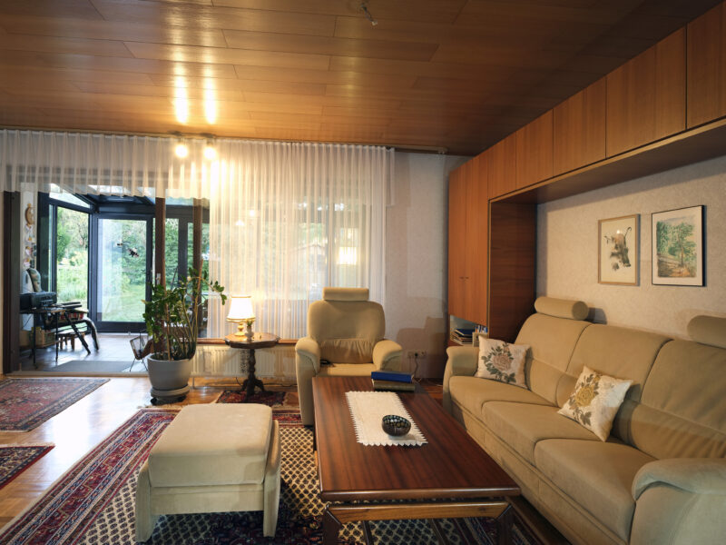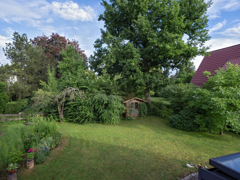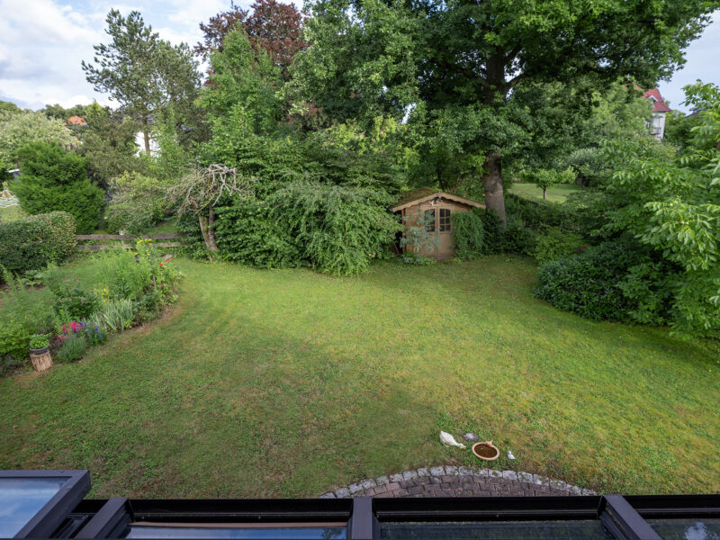 Das Grundstück präsentiert sich als grüne Oase mit viel Privatsphäre. Ein großzügiger, sehr schöner Wintergarten, ein überdachter Balkon und der gepflegte Garten schaffen eine einzigartige Wohnatmosphäre und laden zu entspannten Stunden im Freien ein.